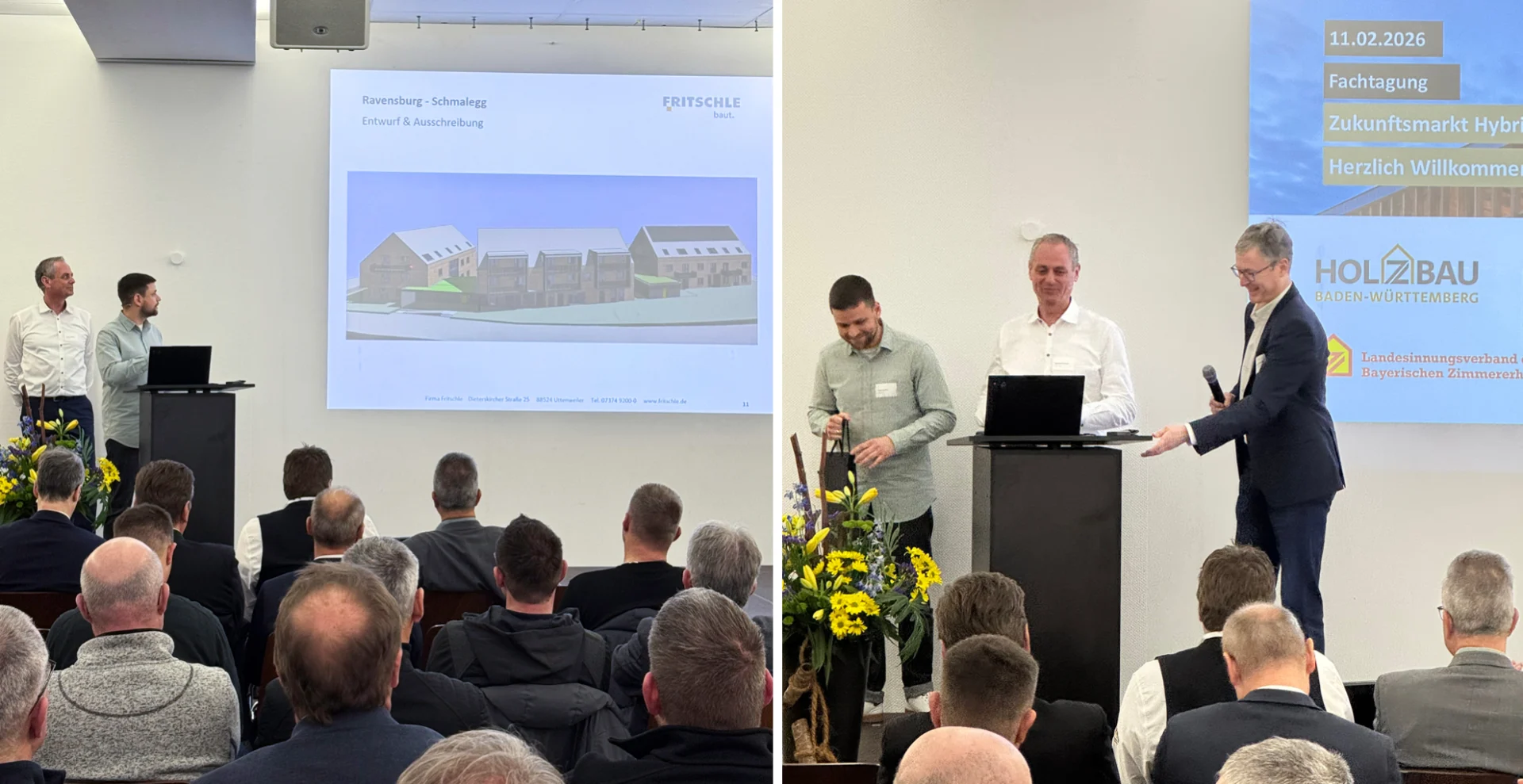 Die Fachtagung am 11. Februar 2026 bot eine wertvolle Plattform für den Austausch über aktuelle Entwicklungen in der Hybridbauweise. Von der Firma Fritschle präsentierten Mathias und Tobias am Podium fundierte Einblicke und aktuellste Lösungen aus der Unternehmenspraxis.