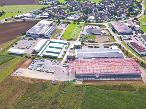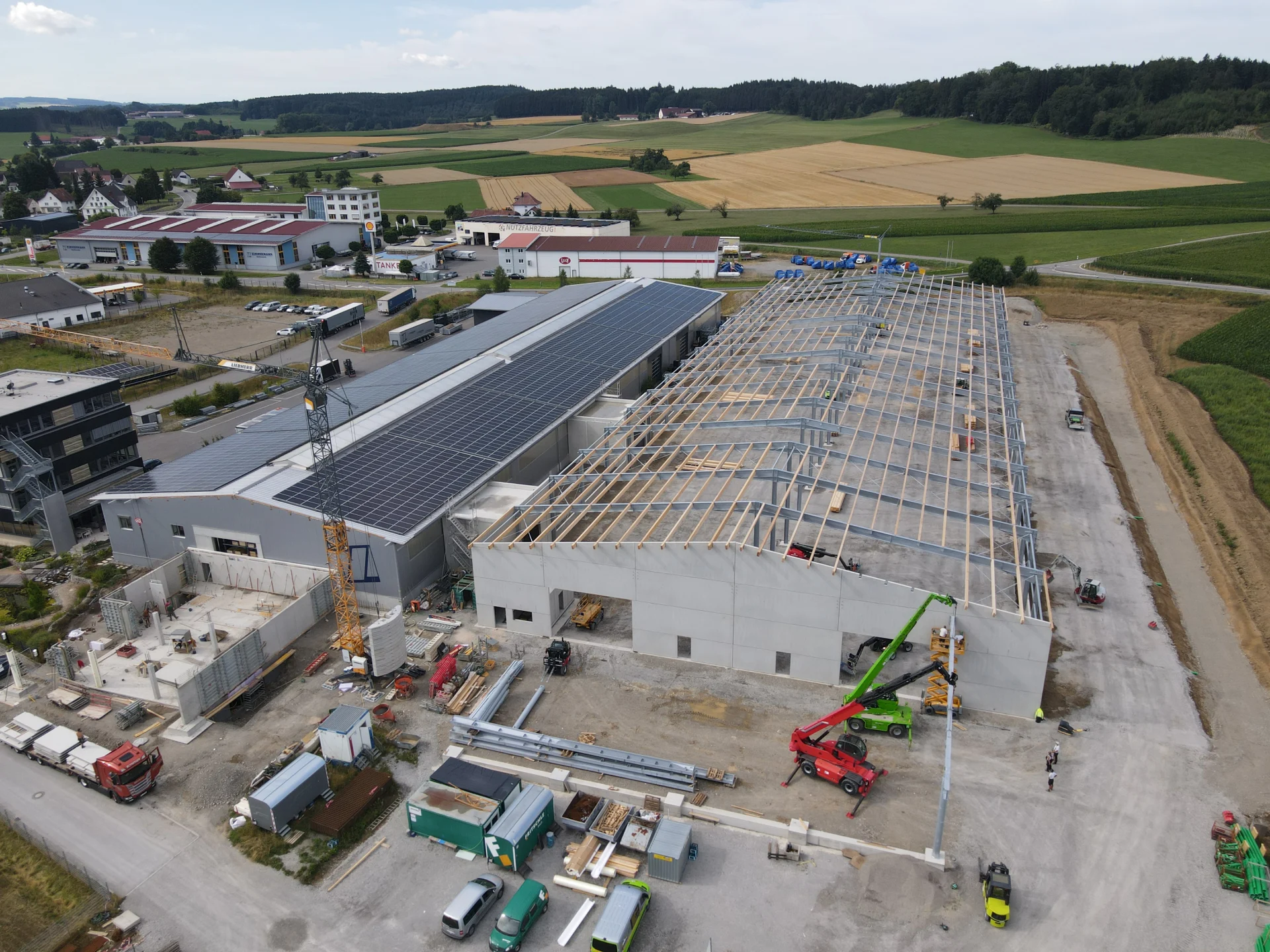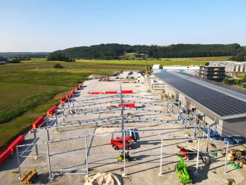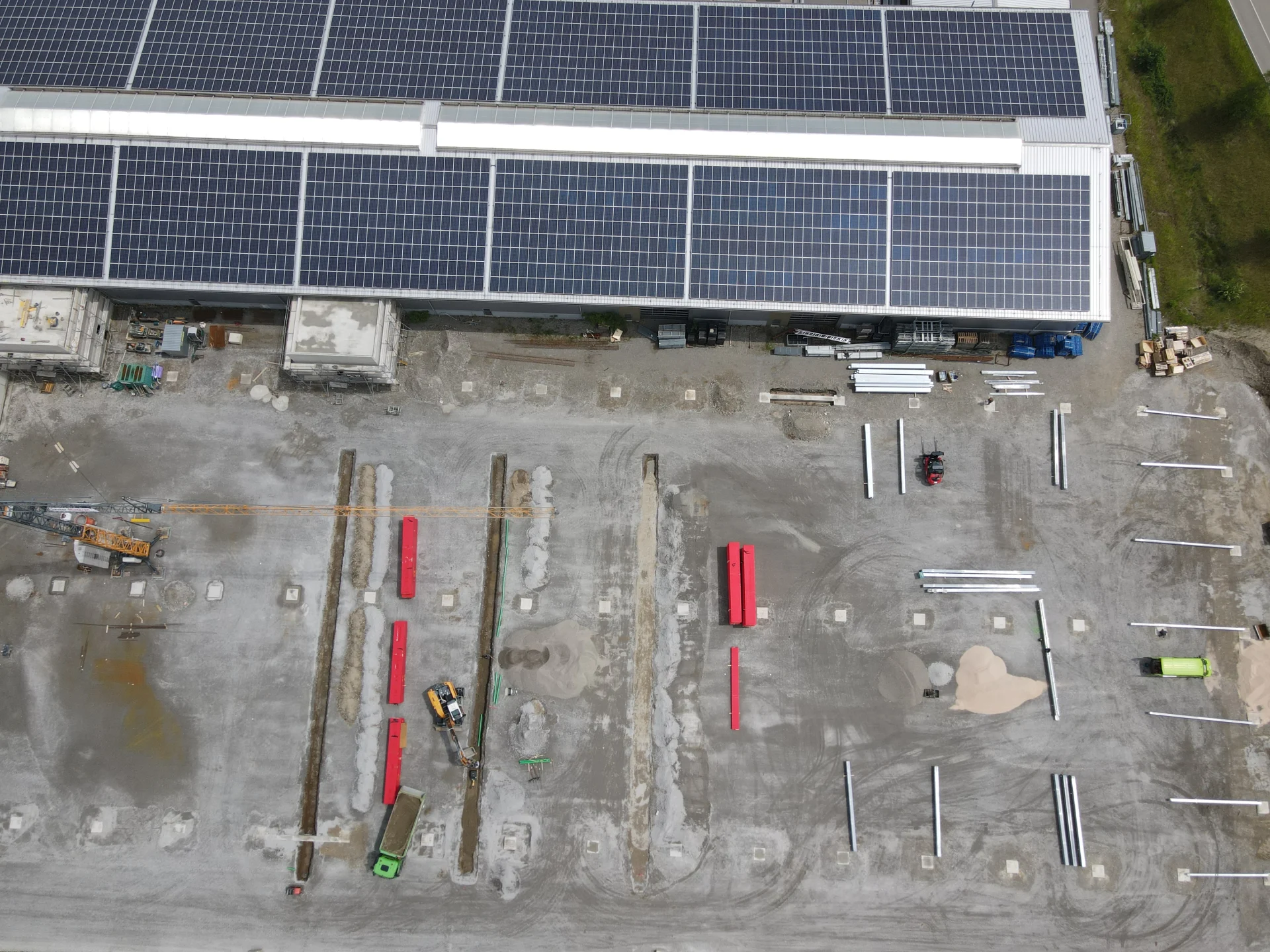 Betonieren, betonieren, betonieren. Bei dem Bauvorhaben entstand auf auf einer Länge von 150 m und einer Breite von 50 m eine fast 8000 m² große Lagerhalle für die Fa. Zimmermann PV-steel Group. Baubeginn war im März 2025. Das Projekt wird von uns schlüsselfertig ausgeführt!