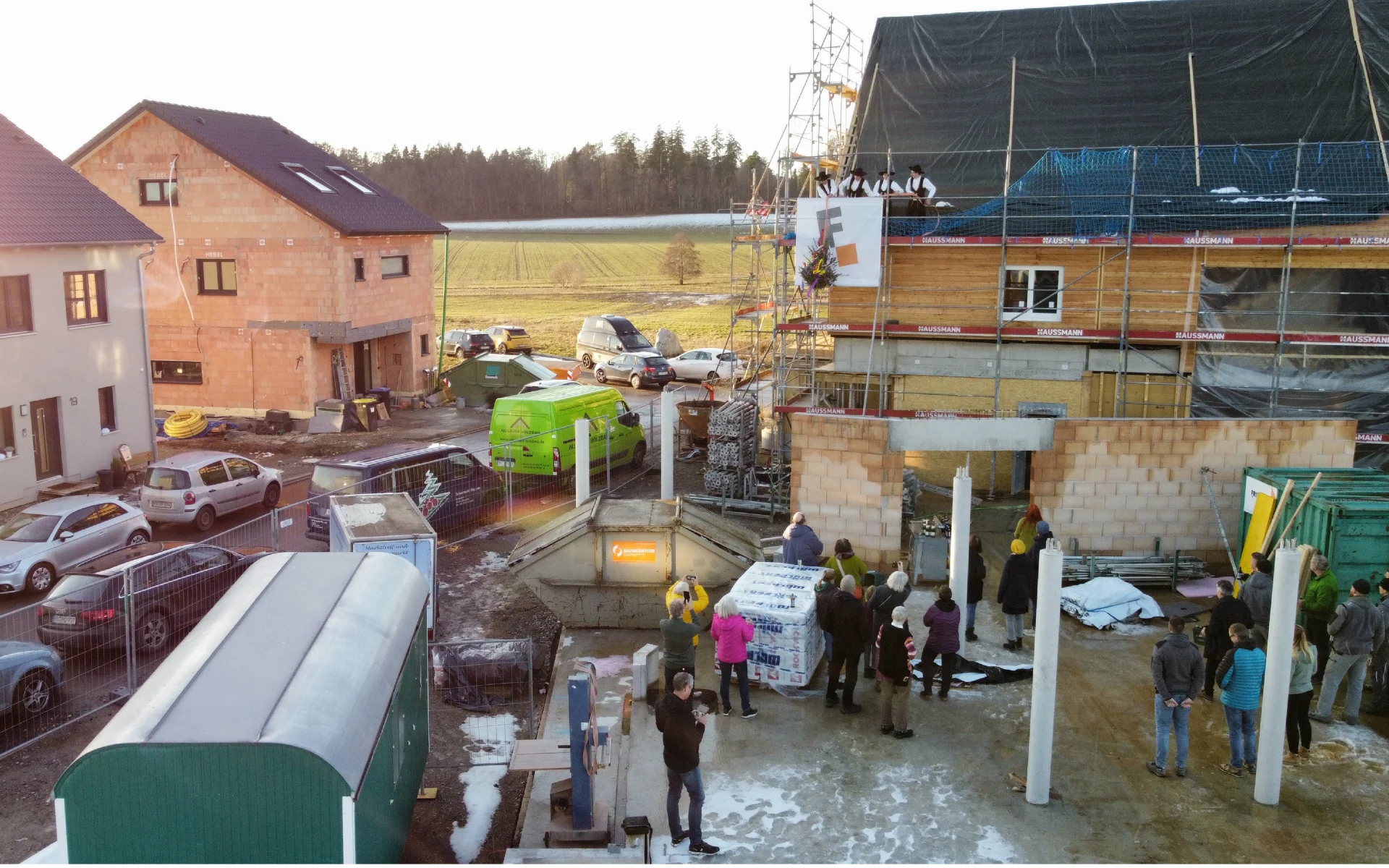 BRRRRRRR! Es ist IMMER NOCH bibberkalt. Dann feiern wir uns eben warm – einen sehr guten Anlass dafür hatten wir nämlich gerade. Im Ökoseedorf in Schmalegg konnten wir für das erste von drei Häusern Richtfest feiern. Und die Freude hat für einen Moment sogar die Kälte vertrieben.