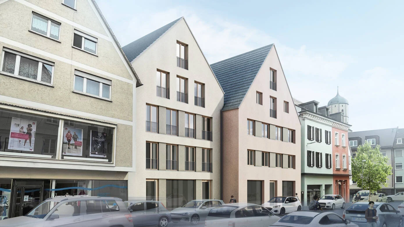 Um Nachhaltigkeit und Klimaschutz geht es auch in der Ulmer-Tor-Straße. Denn dort entsteht ein Wohn- und Geschäftshaus mit CO2-neutraler Heizung und der Nutzung von Grundwasser zum Heizen und Kühlen. Entworfen wurde das attraktive, mehrstöckige Gebäude vom Architekten Dominik Poss und es schließt endlich eine optische Lücke, die über mehrere Jahre bestand. Im Erdgeschoss, im 1. Stock und in Teilen des 2. Obergeschosses sollen gewerbliche Betriebe, Büros oder Praxen einziehen, im 2., 3. und dem Dachgeschoss insgesamt sieben Wohnungen entstehen.