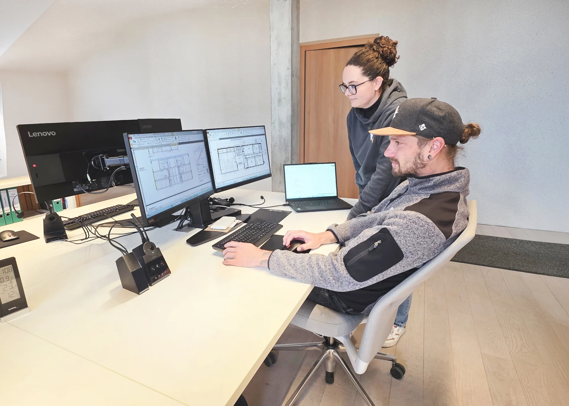 Bei Fritschle im Holzbau ermöglicht CAD eine präzise 3D-Modellierung von Bauteilen und Konstruktionen. Nicht nur, dass wir mit Hilfe der CAD Konstruktionen die Zusammenarbeit des tollsten Teams der Welt durch den schnellen Austausch von Plänen und Daten maßgeblich erleichtern können – durch die digitale Planung lassen sich außerdem mögliche Fehlerquellen frühzeitig erkennen und vermeiden.