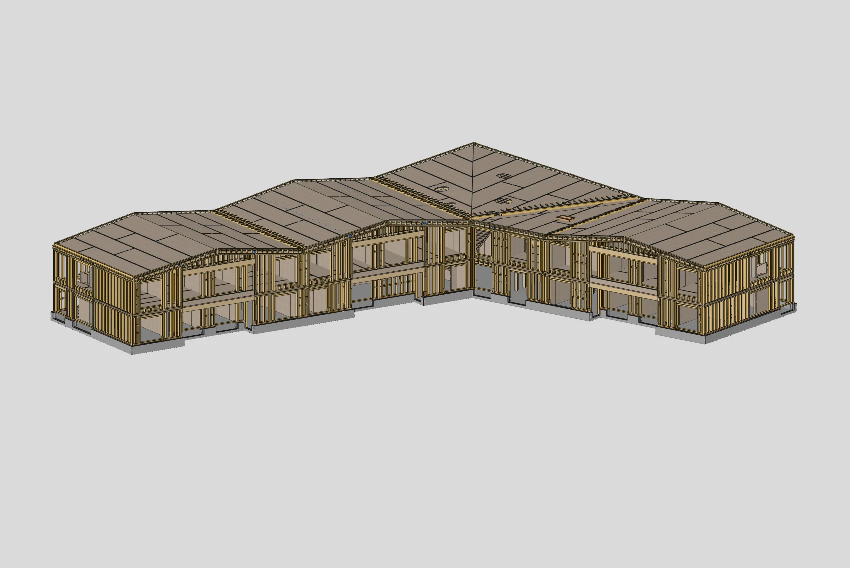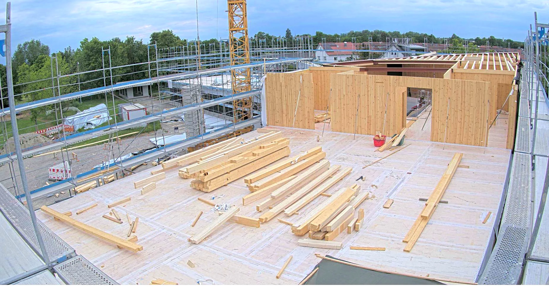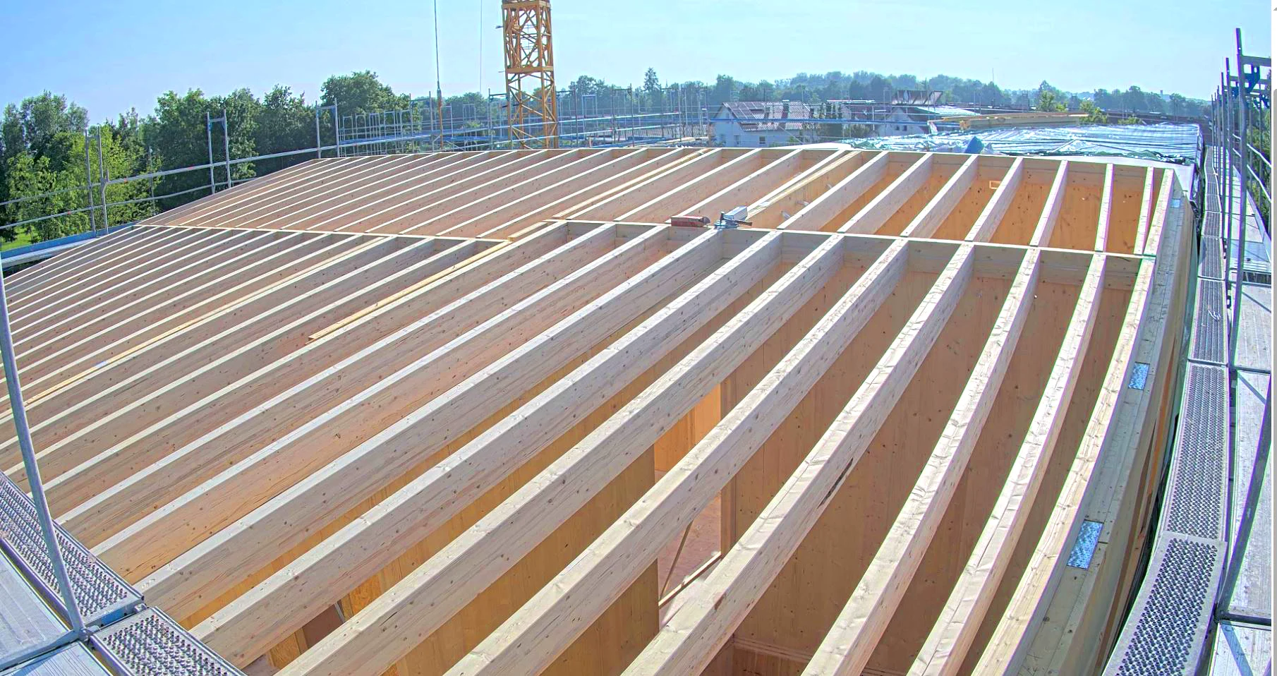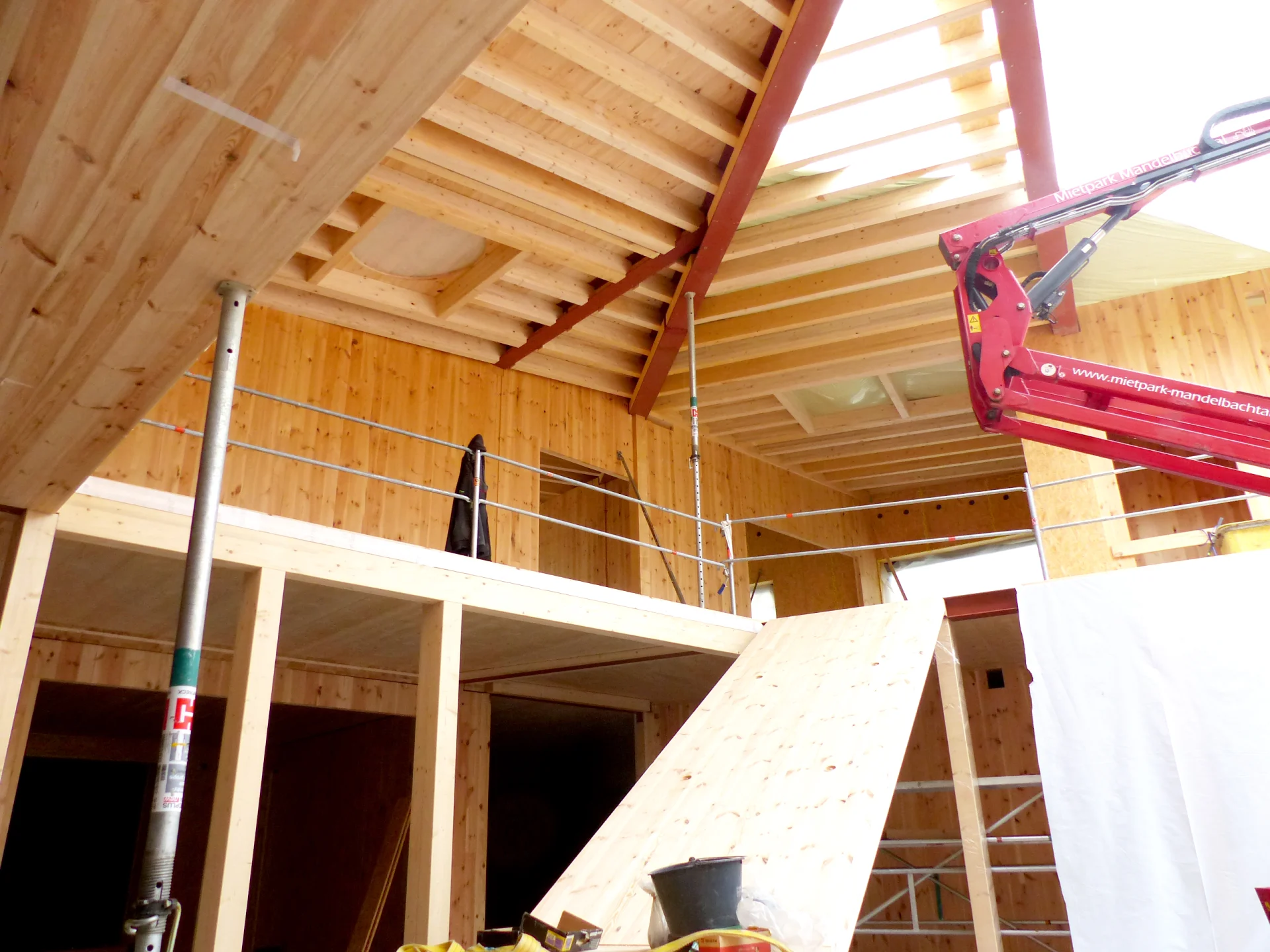 Verfügung stehen. Bei dem Neubau wurden bis zu 1500 m3 Holz verbaut.