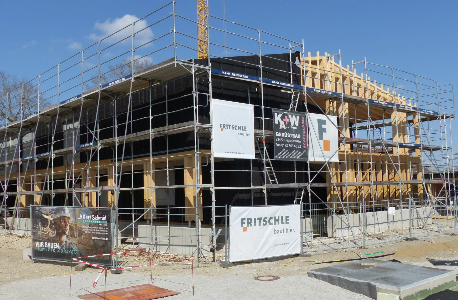 Der Neubau der KITA Mittelbiberach nimmt erkennbar Form an. Es entsteht ein Hauptgebäude sowie ein Nebengebäude, in dem die Technik und das Spielgerätelager Platz finden werden. Baubeginn war Ende Februar 2025. Es handelt sich hier um einen klassischen Holzrahmenbau. Die Geschossdecken werden
